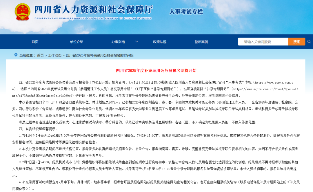 四川省考补录7月9日-7月10日18:00,会公布补录面试名单。