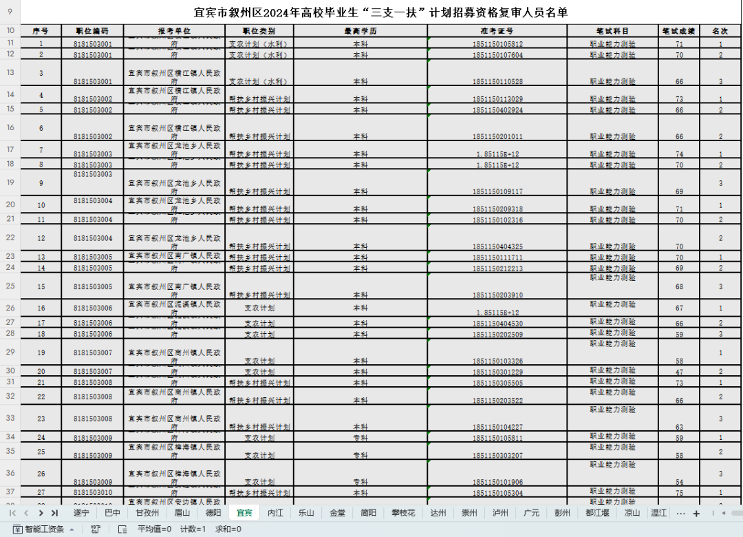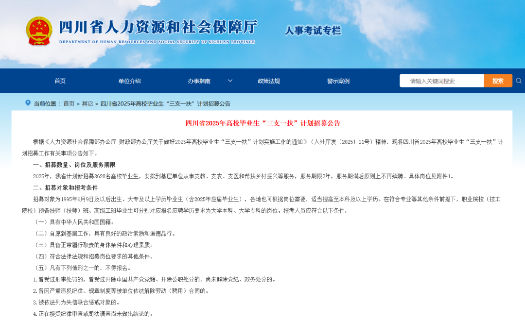 四川三支一扶资格复审及面试的时间、地点,由各市(州)人力资源社会保障部门安排在相关网站公布。