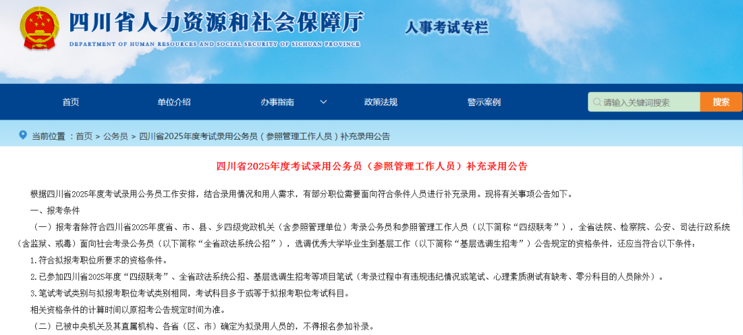 2025四川省考补录公告终于出来了