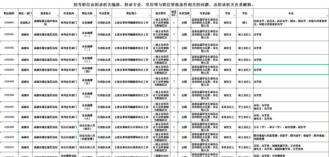 四级联考1311人,选调生24人,法院238人,检察院54人,公安171人,司法局系统53人,监狱戒毒221人!