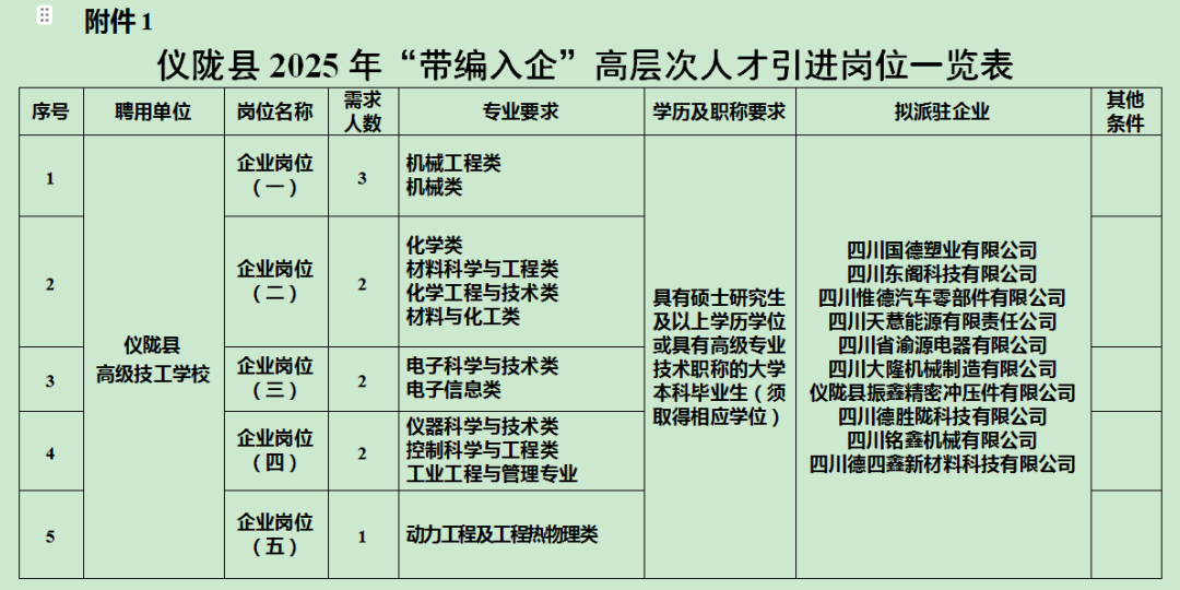 (部分岗位表)