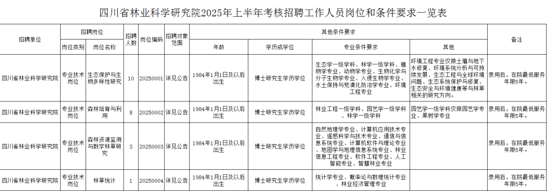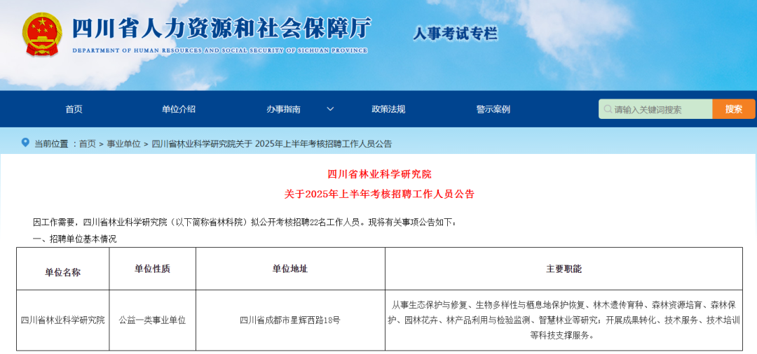 四川省林业科学研究院25上半年招聘工作人员公告!