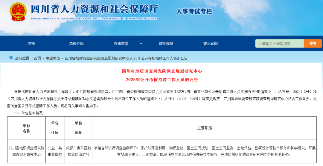 四川省地质调查研究院调查规划研究中心招聘公告!