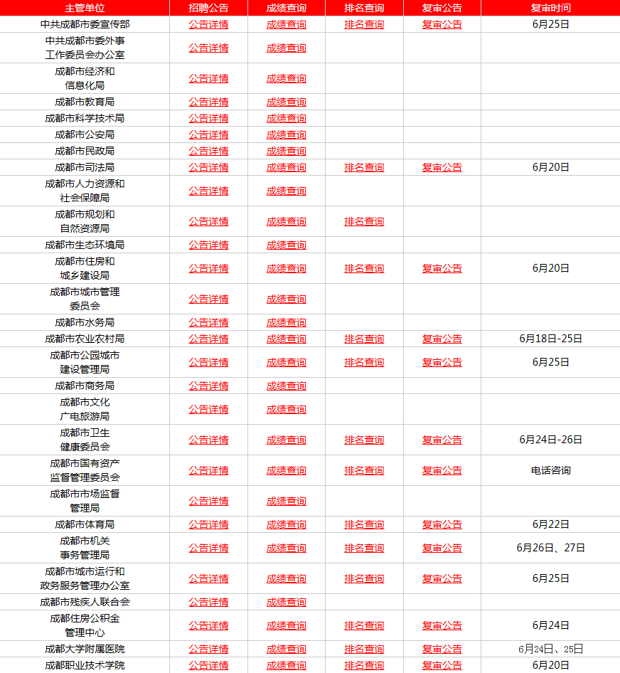 25年成都第三批事业单位笔试排名可查单位汇总如下: