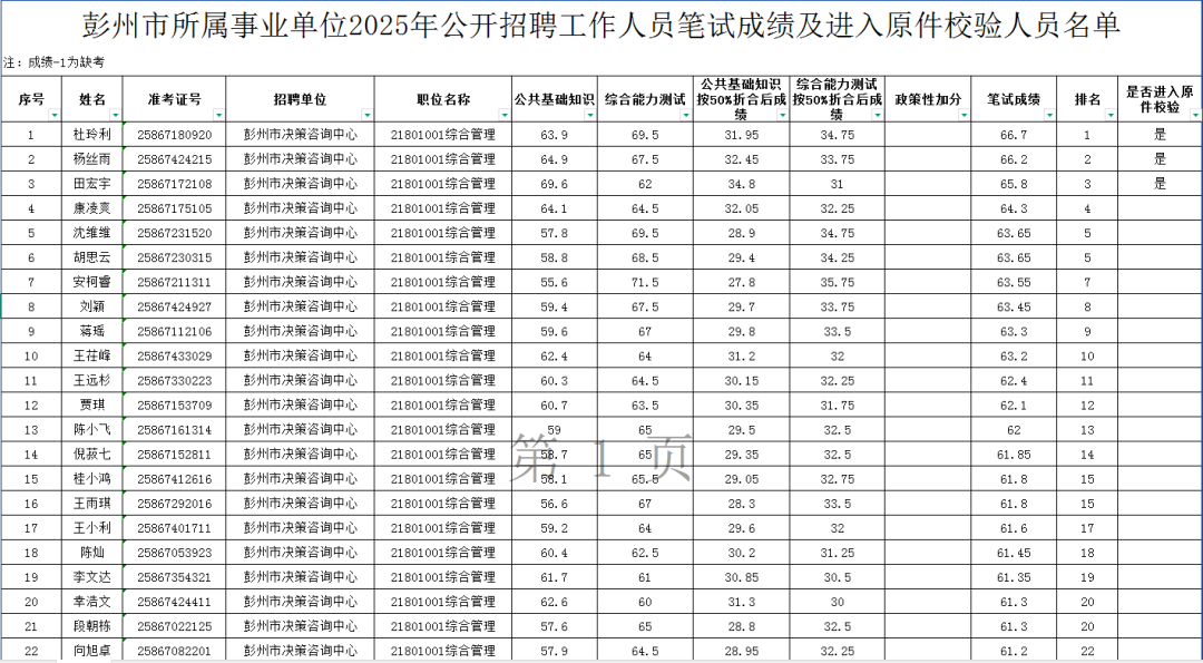 地点:彭州市人社局会议室(彭州市回龙西路18号……办公区7楼)。逾期未参加原件校验者,视为自动放弃。