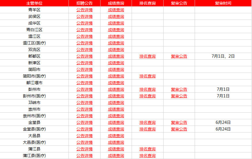 成都第三批事业单位进面名单及资审时间汇总