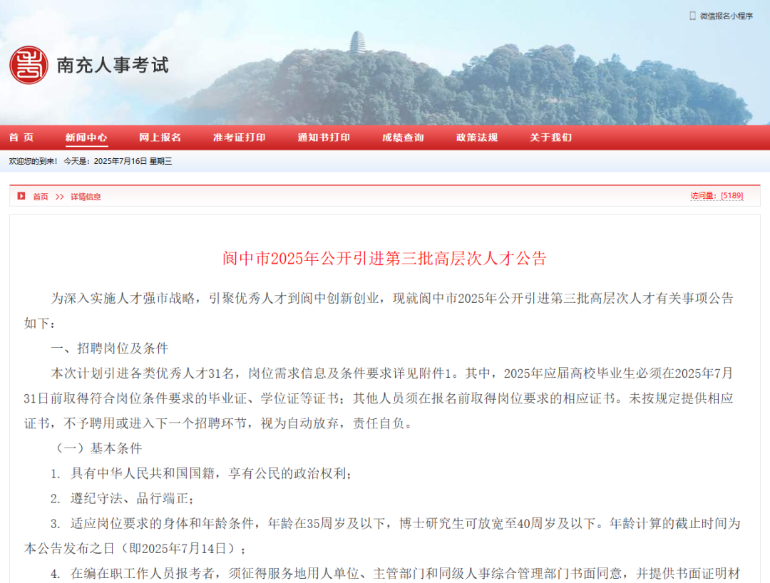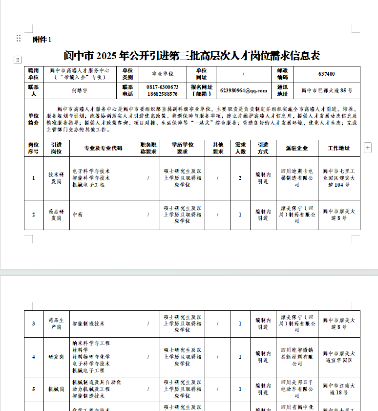 南充引进第三批高层次人才公告